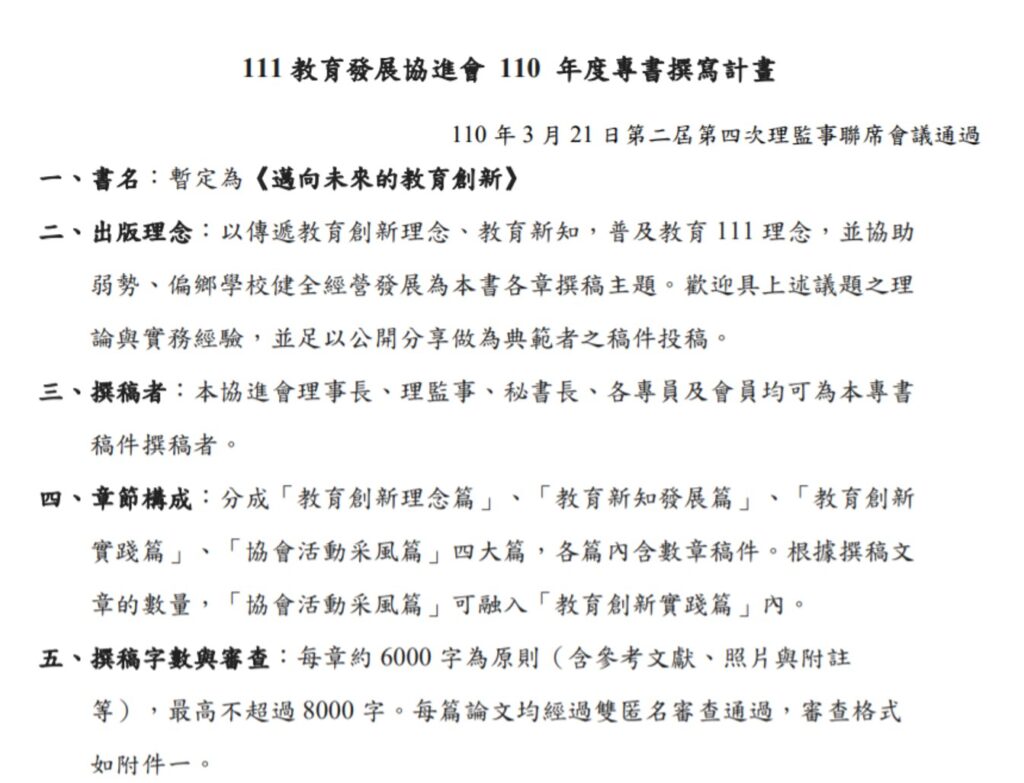 111 教育發展協進會 110 年度專書撰寫計畫