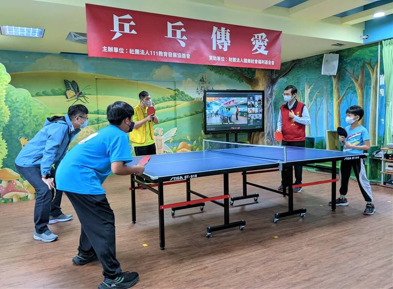 社團法人一一一教育發展協進會贈予新北市大成國小等十所偏鄉小學桌球器材設備,每校獲得市值二萬元的桌球檯、球拍及比