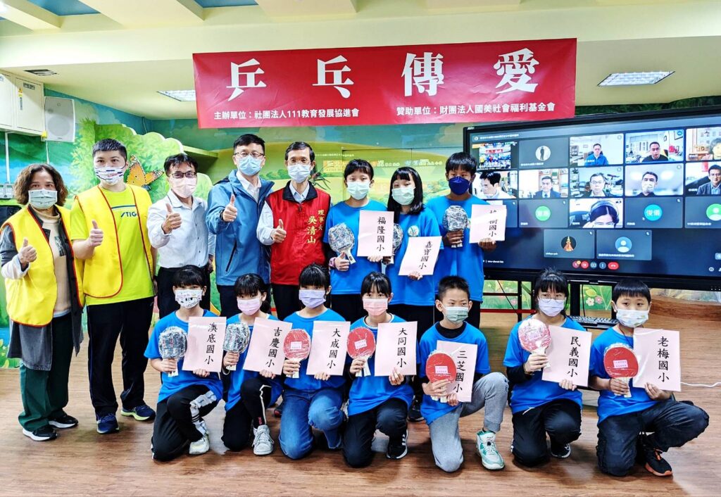 111教育發展協進會為了鼓勵學生多運動強身健體,捐贈新北10所偏鄉小校桌球器材,包含球桌、球拍、比賽用球等設備